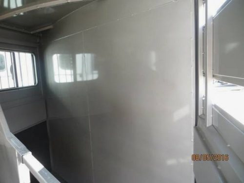 Titan trailers steel framework and design surpasses others with smooth outside Galvanneal skin (galvanized steel prevents rust), 12 guage Galvanneal roof cove, two 3500# torsion EZ lube axles, electric brakes and 15″ radial tires. GVWR of 7000# with an empty trailer weight of approximately 3620#. This trailer also includes a spare tire in the tack room.