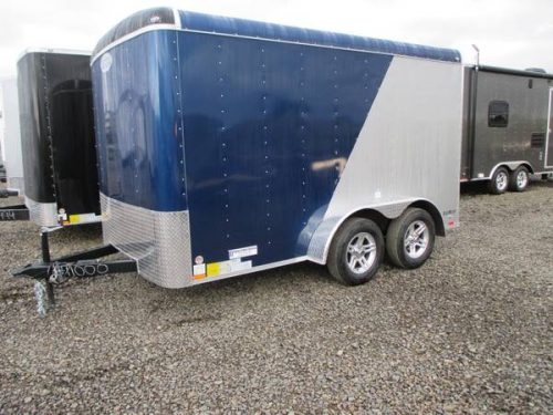Made by Forest River This cargo trailer is BEAUTIFUL,,,, It has a blue front and a diamond ice rear end with a Ramp Door and spring assist. It has Fold Down stabilizer jacks, (4) Recessed floor mount 2,000 LB D-Ring Tie Downs, Two Tone slant metal, a one piece aluminum roof, 3/16″ Lauan Liner, and 15″ Aluminum Wheels W\ Center cap.425-252-8525