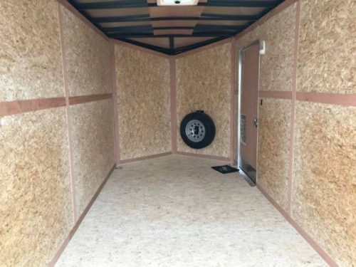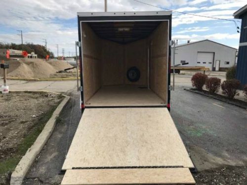 Forest River US Cargo is supplying us with the best value v nose trailer built today! The trailer has a ton of extra features: .030 metal, screwless exterior, 16″ on center floors and walls, rear stabilizer jacks, ramp door, urethan on the tongue and rear crossmember, 30″ bonus space v-nose, radial tires, one piece aluminum roof, flush lock side door, (4) d-rings 5K capacity in the floor, spare tire and mount in the v nose. The trailer is equipped with electric brakes on both axles and the slant wedge nose with a roof vent, light switch, & two interior led lights. Check out the pictures of this unit before it is gone! The 79″ rear door opening is big enough for most UTV’s or tall people!