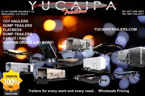 Yucaipa Trailers is not responsible for typographical or photographical errors. Some of the trailers in the photos are equipped with optional options and are not on this particular trailer for sale. Some photos are for publication purposes only. Some trailers are FOB certain locations. Please call our toll free number to speak with a sales representative to verify all the information on the trailer and the exact pickup location of the unit you are looking at. All trailers are subject to prior sale. Specs and options are subject to change without notice.