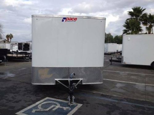 PACE AMERICAN OUTBACK 8.5 X 16 w/ 7′ Interior height, 12″ extended tongue, Cable assist Rear Ramp door, 4 rope tie downs, 2 sidewall vents, Drymax engineered moisture and oil resistant wood, Interior dome light, 3 year warranty, and more! Call for Details!