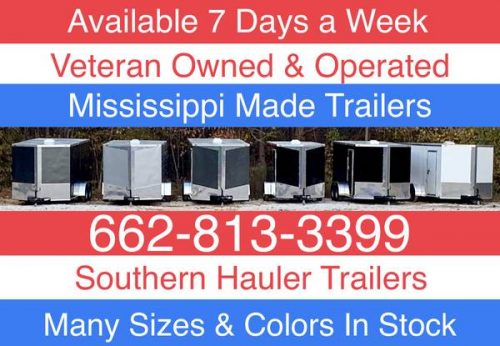 Veteran owned and operated, you pay NO TAX if you are not a Mississippi resident! We are available 7 days a week, after hours is OK! Every one of my trailers has square tube 16″ construction on center wall braces. Even the 5×8 trailers!