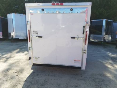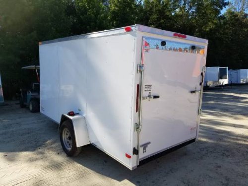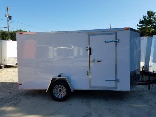 An enclosed trailer from SGAC. 6×12 Enclosed trailer with a ramp door and a side door. This trailer comes in black and white. Give us a call for more information.