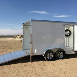 New 2017 Side X Side Trailer 7′ X 14′ V-Nose Extra height, rear door opening is 80″ tall. Roof vent Side wall vents RV Door […]